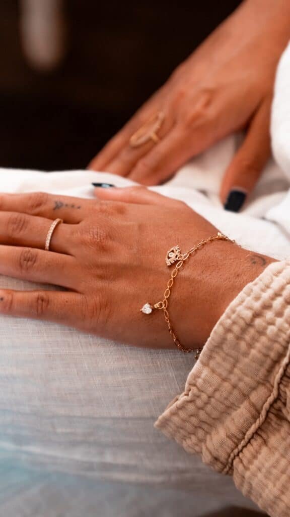 Afin que le bijou soit bien ajusté et qu’il soit confortable, nous validons ensemble la longueur de la chaîne.